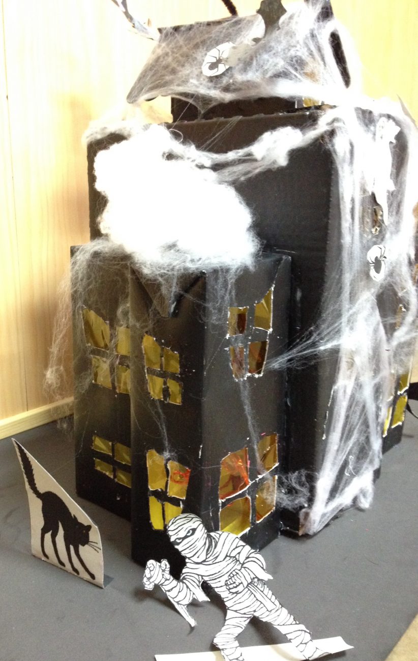 The main object of this project is working with specific vocabulary related to Halloween together with the prepositions of place. The students will have to draw other decorative elements such as witches, black cats, tombstones, spider webs etc, that will be placed in different locations around the house according to the use of prepositions following the teacher’s instructions. Finally, the house will be lit up with little led lamps and the students will describe it giving special emphasis to the prepositions of place and specific vocabulary.