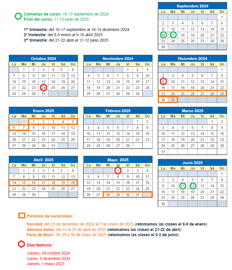 | Durante el curso escolar, salvo festivos nacionales y locales, Navidad, Semana Santa y miércoles, jueves y viernes de la Feria de Córdoba. Ver calendario del curso. | |